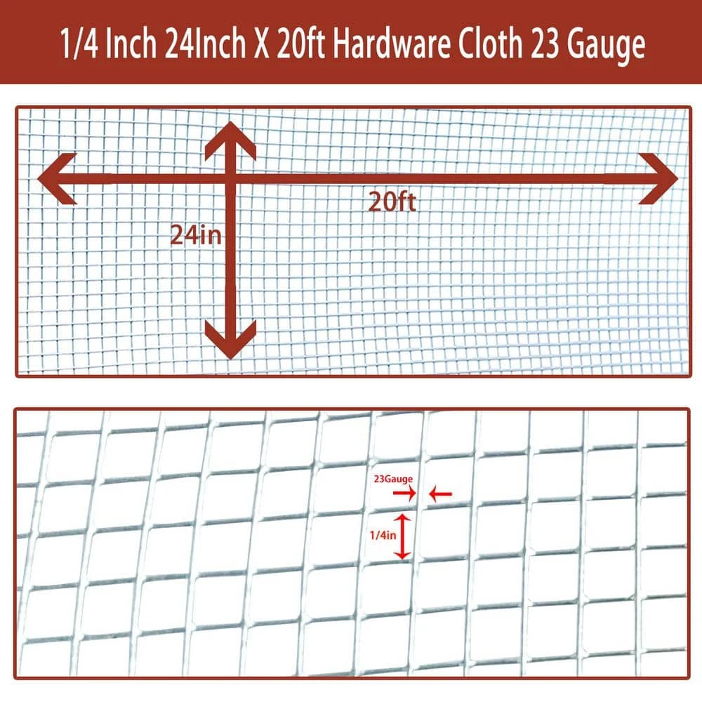 - Product size: this product size is 1/4 in. hole, 23-gauge 24 in. x 20 ft, please purchase the appropriate width and mesh according to your needs, so as not to delay your use, we use hot galvanizing process, which can be used outdoors for a long time and is not easy to rust, you can rest assured with our galvanized wire mesh rolls
