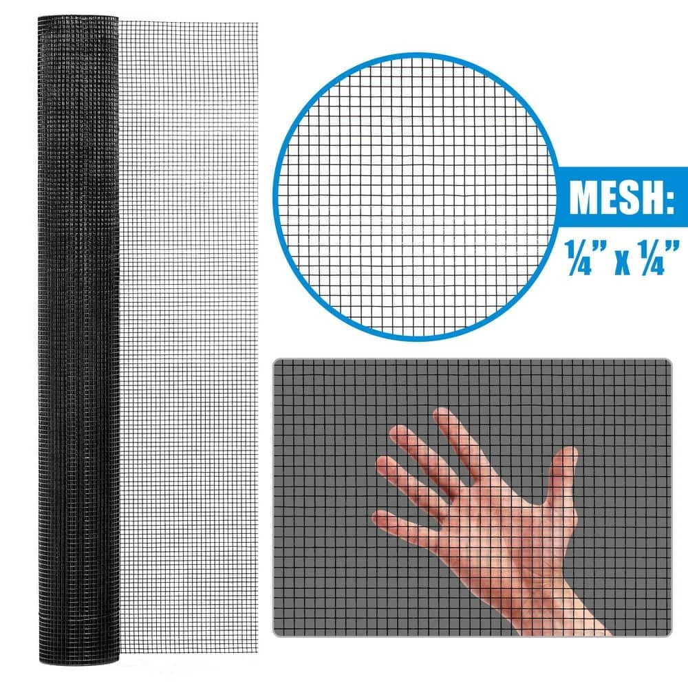 Fencer Wire Vinyl Coated 23-gauge Welded Fencer Wire Roll, Mesh Size 1/4 in. x 1/4 in., Black Garden Fencing Wire Grid Hardware Cloth, Poultry Chicken Fence Rolls, Multiple Use for Home Improvement. Use this material to line the bottom of your chain link fence and cut it in half by leaving it in a roll with a hack saw; it is plenty stiff for what you want to use it for. This mesh solved issues with snakes, gophor, skunk, chipmunks, rabbits and other creature living under your wooden deck. Fence Size: 3 ft. x 5 ft. with Mesh Size 1/4 in. x 1/4 in..