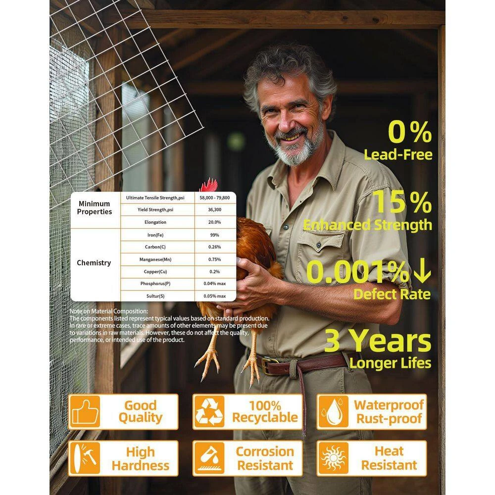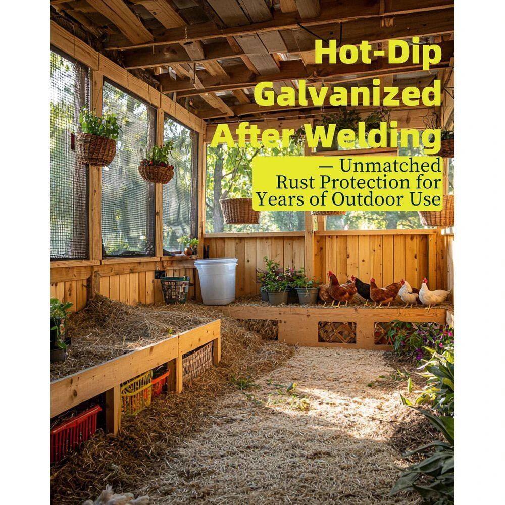 Made of 23-gauge steel wire with post-weld hot-dip galvanization, This mesh roll combines strength and corrosion resistance. The 1/4-inch fine mesh effectively blocks small animals like gophers and rodents while allowing airflow and light, making it ideal for garden protection, poultry fencing, and pest control in buildings. Its large 36inx50ft size suits extensive fencing projects, and the flexible wire can be easily cut and bent to fit various shapes. The galvanized coating ensures excellent rust resistance, maintaining durability even in long-term outdoor exposure to moisture and sunlight. Whether for building chicken coops, safeguarding vegetable gardens, or acting as a pest barrier in warehouses, this hardware cloth delivers reliable, long-lasting protection for multiple applications.The large 36inx50ft roll is ideal for extensive projects, while the 23-gauge wire can be easily cut and bent to fit complex structures like walls or pipes. The hot-dip galvanized coating passes rigorous outdoor tests, offering over 10 years of rust resistance. From home vegetable gardens to industrial warehouses, this hardware cloth provides long-lasting protection with precise design and reliable performance.Acts as a fence to block small animals from damaging plants, protecting flowers and vegetables while enhancing garden aesthetics. Ideal for chicken coops and rabbit hutches, providing secure spaces to prevent escapes or predator attacks.