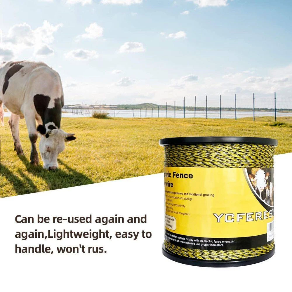 Introducing our upgraded electric fence polywire, featuring a 1/8 in. Dia with 6-stainless steel conductors for superior conductivity and rust resistance. Ideal for temporary fencing, it boasts a bright, distinctive color for easy visibility. Easy to install, repair, splice, and rewind, this polywire is lightweight and durable, thanks to its UV-stabilized polymer webbing. Made of premium stainless steel, it outperforms aluminum wire by maintaining effectiveness and conductivity over time. Suitable for horse, dog, and goat fences, it works with all electric fencing reels and comes in a cost-effective 3366 ft. spool. Backed by a 30-day warranty or replacement and lifetime customer service, we guarantee 100% satisfaction or your money back.