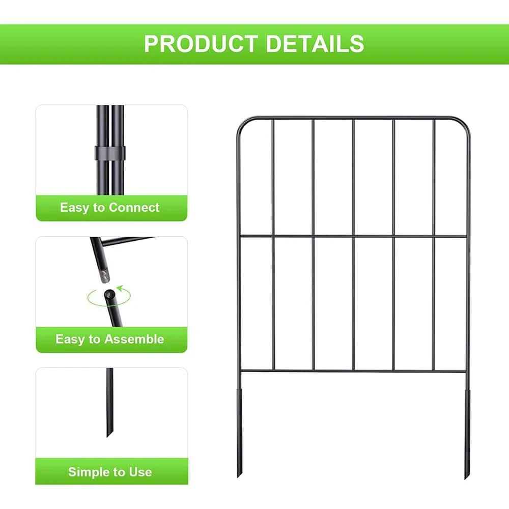 Give your garden a new look with this garden fence with 10 fence panels. Made from metal, this fence bundle is a blend of beauty and function, making it perfect to add to your garden’s allure. This beautiful powder coated and weather-resistant garden gate and fence is available with an anti-rust promise making it perfect for those looking for a fence that will last a long time. Our garden fence animal barrier panels will allow you to create any shape and protect your square, round, oval, rectangular or oddly shaped garden. Each panel can be connected easily by connecting the ring and hook. To assemble, simply insert the stakes (included) into the ground. Hassle free for your home projects.