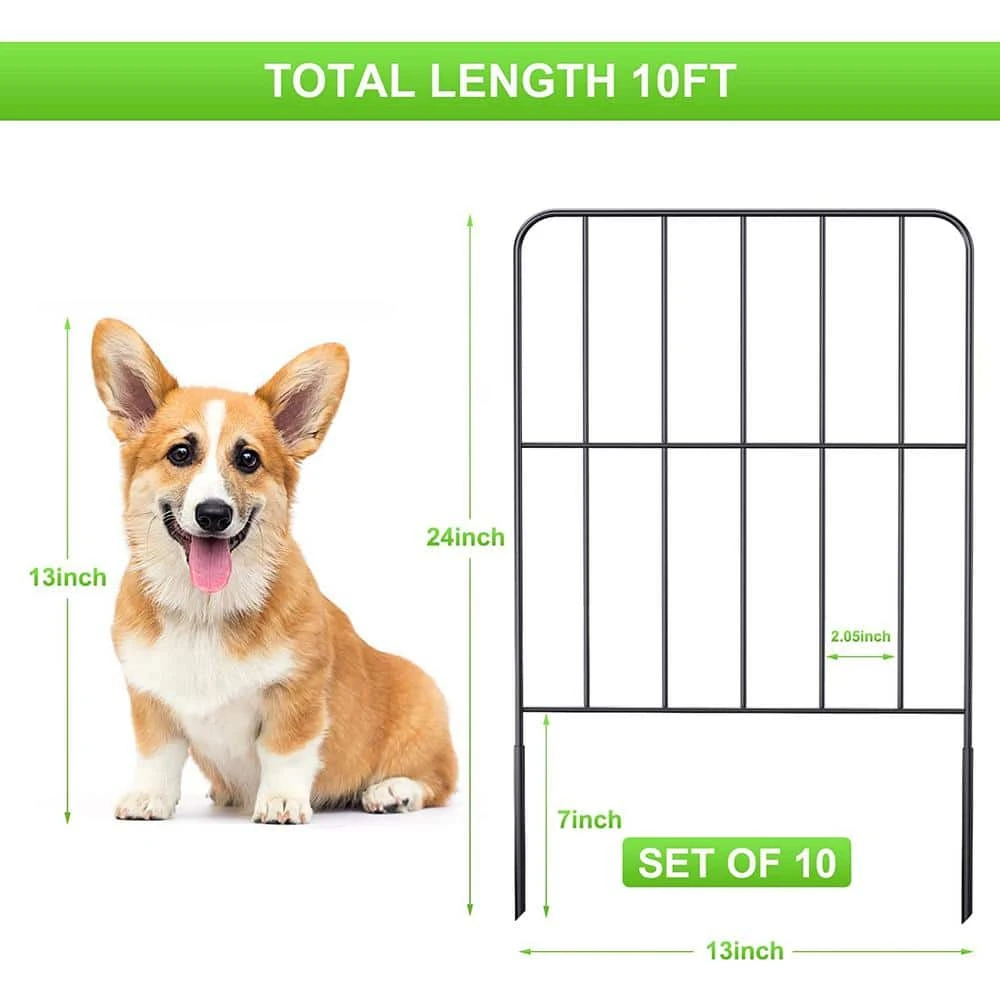- Dimension the height of each piece of the decorative garden fence is 24 in. H and 13 in. W with a total of 10 panels it’s 10 ft. L to connect all of them