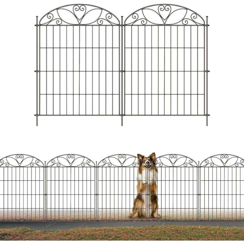 - Spacious coverage and secure design: each panel measures 28 in. wide by 32 in. high, with a 1.7 in. gap between bars, this set includes 11-sturdy metal stakes, ensuring a solid installation, when fully assembled, the fence spans approximately 24 ft. making it ideal for use as a dog fence for yards, or as a barrier to protect plants and landscaping from pets and animals