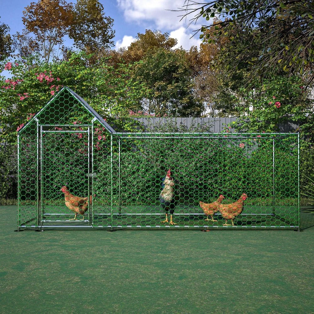 - Durable construction: our large metal coop is made of a sturdy steel frame and thick pvc-coated wire mesh that is rugged enough to withstand long-term outdoor use and protect chickens from predators, in addition, the frame and wire mesh protect the coop from rust and wear, thus providing a clean living environment for the animals and owners
