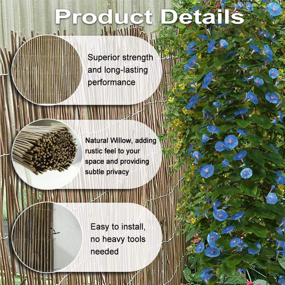 - Our willow fence features rust-resistant galvanized wire for superior strength and long-lasting performance