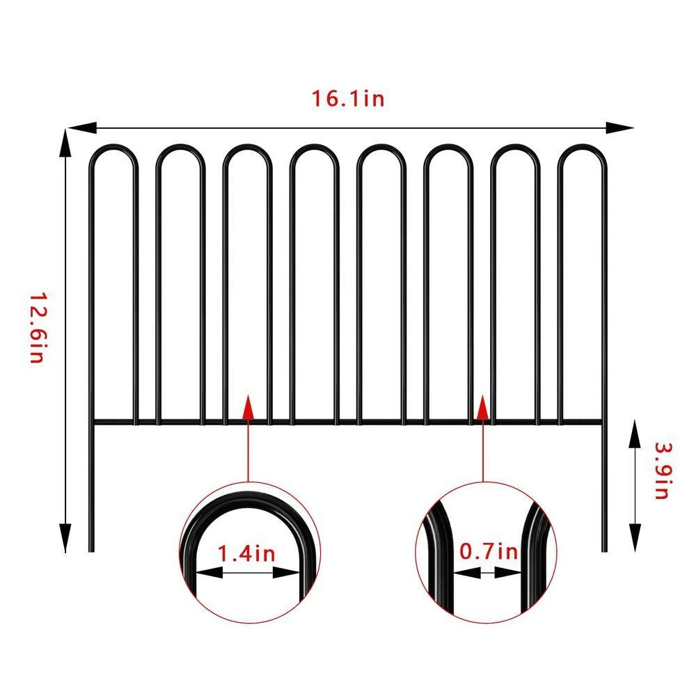 - Dimension each decorative garden fence dimension is 16.1 in. H, 12.6 in. H, with a total length of 10 ft., it’s perfect for prevent small animals to destroy your plants, vegetable, garden