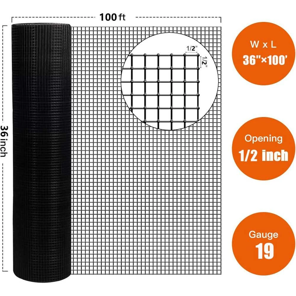 This metal mesh roll measures 36 in. wide by 100 ft. long, with a 1/2 in. x 1/2 in. square opening. Made from durable 21-Gauge annealed metal wire, it’s ideal for keeping small animals out while allowing sunlight and visibility through-perfect for poultry coops, cages, and garden enclosures. The 1/2 in. mesh size effectively blocks snakes, gophers, skunks, chipmunks, voles, raccoons, and other pests, helping to protect your animals and property. Crafted with high-quality wire and precision-welded for strength and durability, the mesh features a uniform vinyl coating for added corrosion resistance and a smooth finish. Each opening is consistent in size, offering both functionality and a clean, decorative look. The structure is strong, rust-resistant, and easy to install-designed not to fade or deform over time. The 21-Gauge wire is easy to cut with wire cutters or pliers, making it simple to customize for your needs. Ideal for a wide range of uses including rodent barriers, chicken coops, critter fences, garden beds, stucco mesh, screen mesh, gopher and snake protection, tree trunk guards, soil sifters, and drying racks.