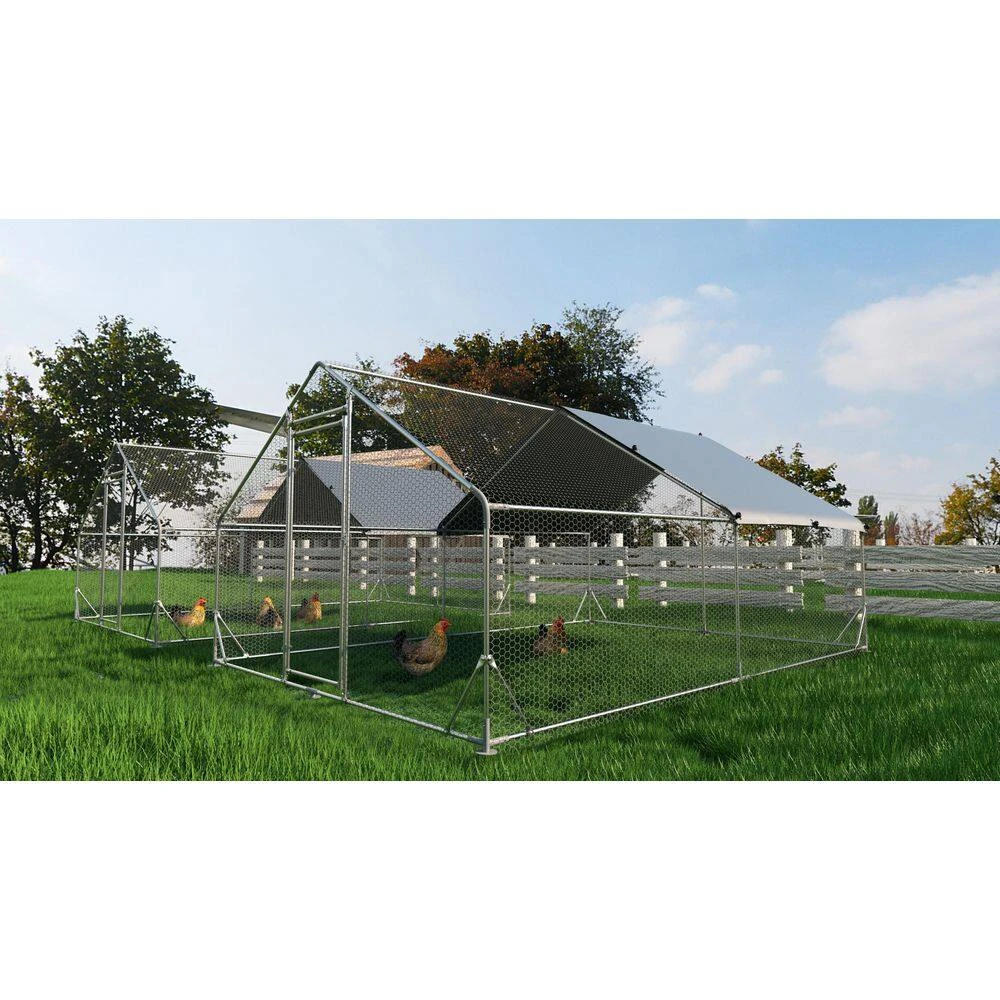 The chicken coop is made of high-quality steel frame, which is strong enough to provide your chickens with plenty of room to move around. It is also not easy to damage, which can extend the life of the chicken coop. In addition, the quick-connect frame is easy to assemble. Our chicken coop adopts an upgraded reinforcement design, and the tube wall we use is twice as thick as other cheap chicken coop tube walls. The durable UV-resistant waterproof cover can protect your chickens from weather and external elements. The chicken coop is galvanized for protection and resists rust, corrosion and fading, so the chicken coop is weatherproof and very durable.
