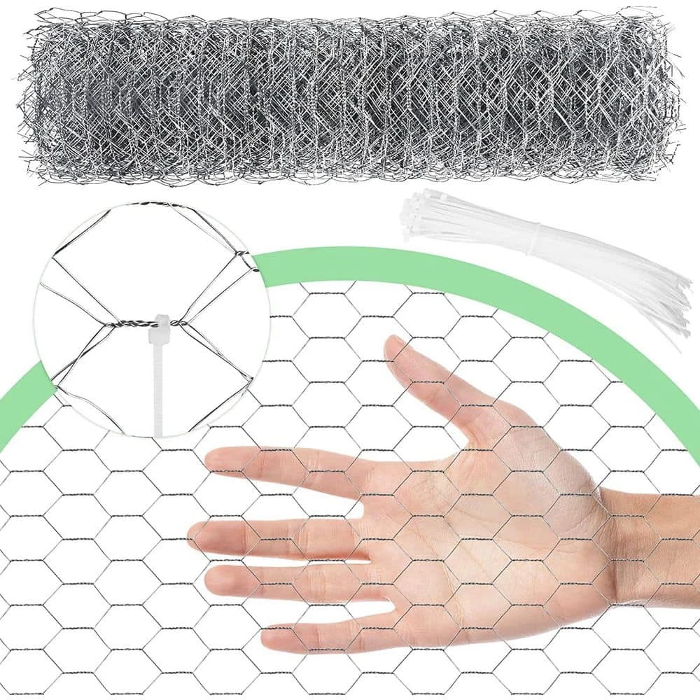 13.7 In. X 590.5 In. Hexagonal Galvanized Wire Netting For Pet Rabbit Chicken Fencing With 100 Cable Zip Ties, Silver
