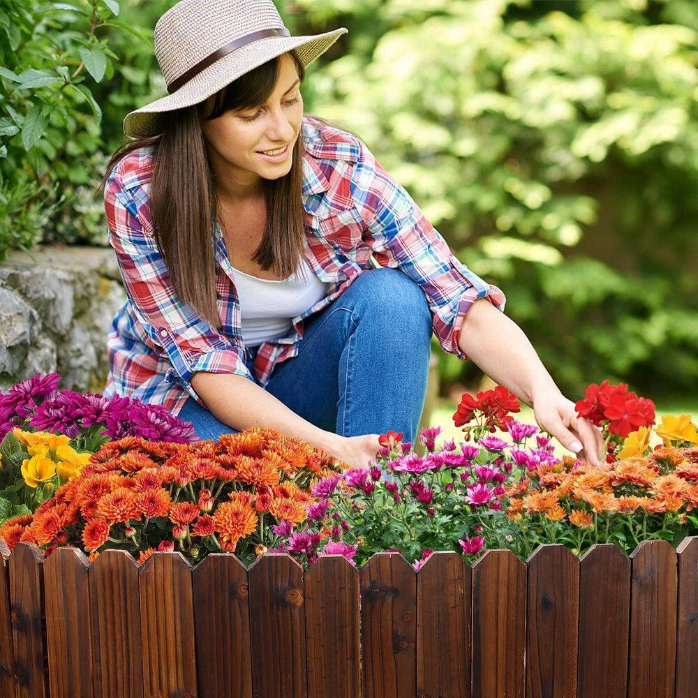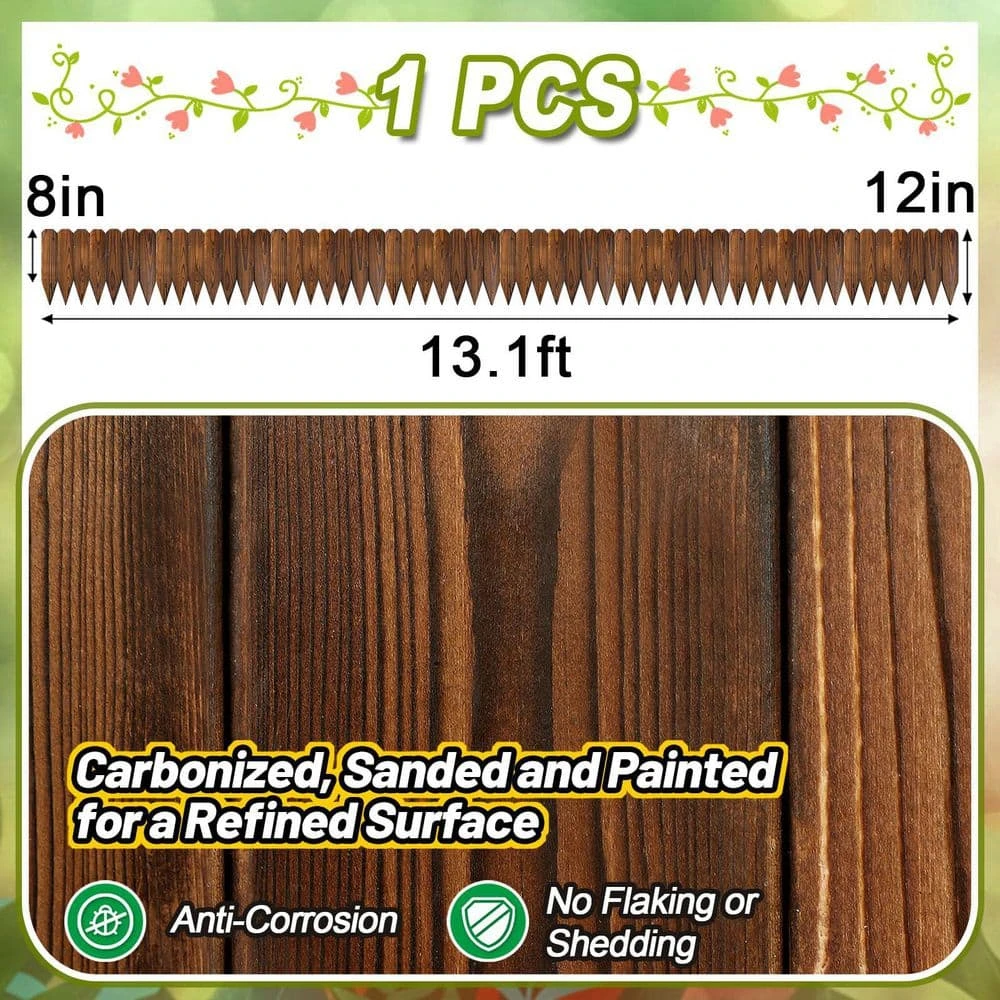 13 Ft. L X 12 In. H Rustic Pine Wood Garden Fence, No Fading Planter Fencing For Yard, Garden And Pathway, Brown
