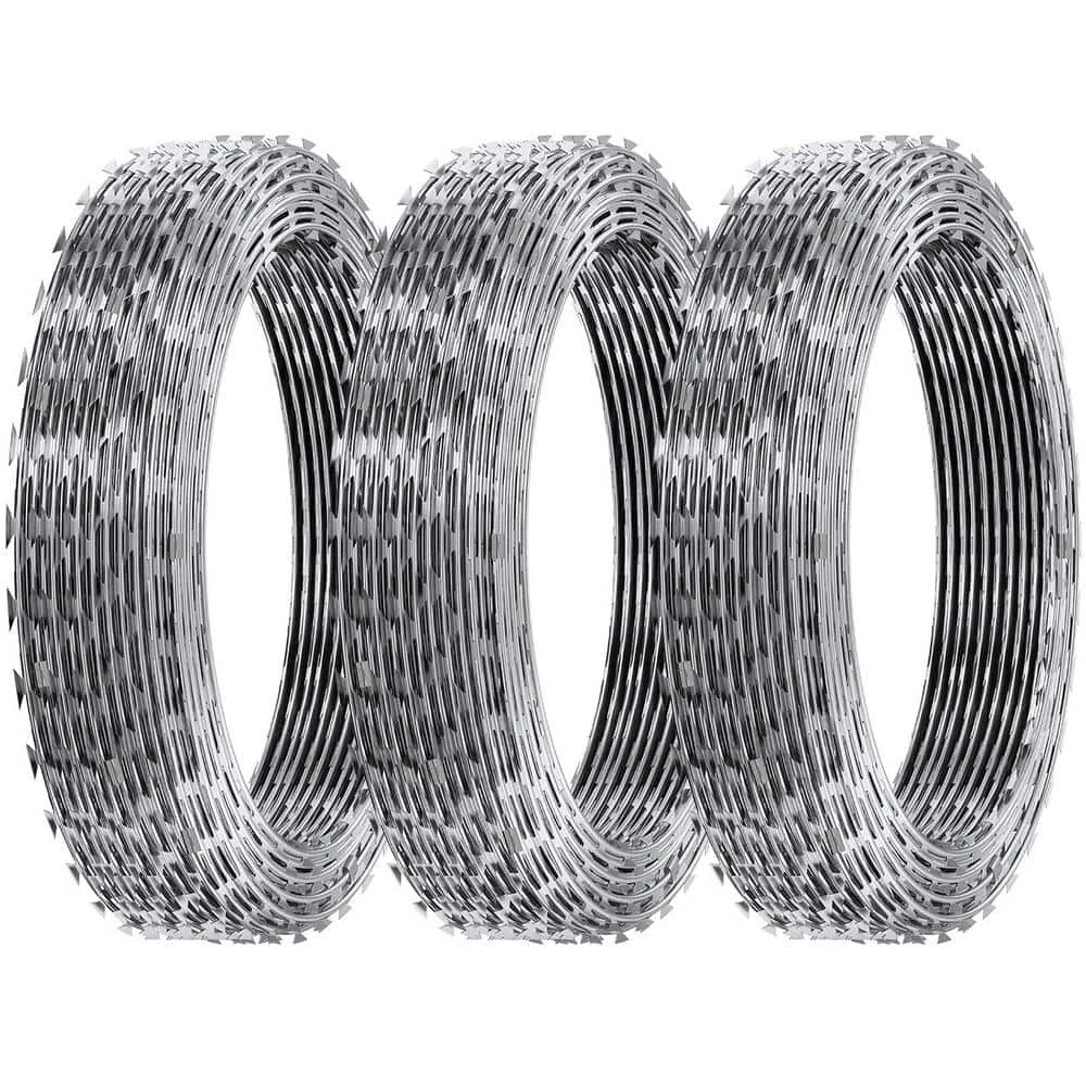 - Sharp razor blades: upgraded with razor blades measuring 0.02 in. Thickness and 0.98 in. W, our razor barbed wire provides superior protection, the longer and sharper blades create a more menacing spiral, increasing security and preventing intrusions effectively