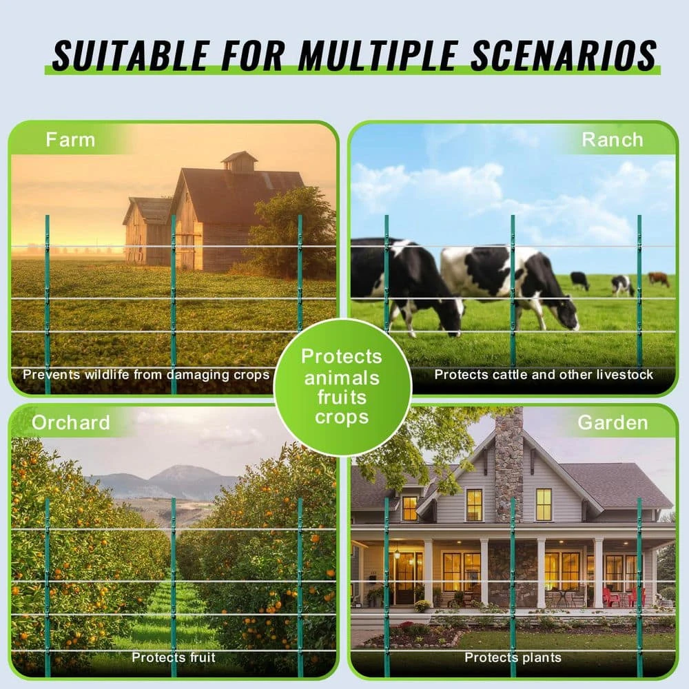 - High tensile strength: the portable electric fencing wire has a Dia of 1.6 mm and comes in a roll length of 1640 ft. /500m, withstanding up to 100 lbs., of tension, this high-tensile design ensures the stability and safety of the fence, making it ideal for temporary pastures and rotational grazing