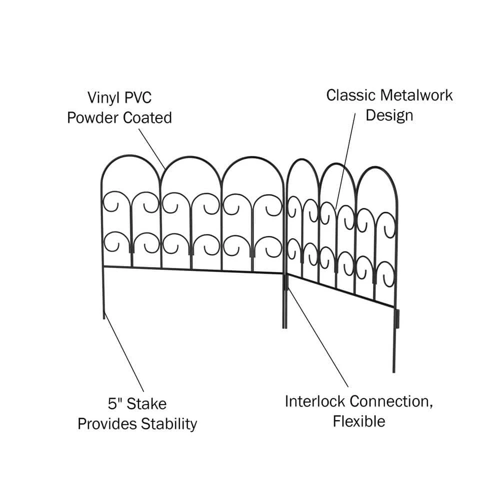 - Classic metal design -the lawn edging pieces have a rounded picket design and feature an attractive wire scroll that adds a contemporary accent to your outdoor patio décor, each panel is powder-coated with vinyl to withstand harsh weather conditions
