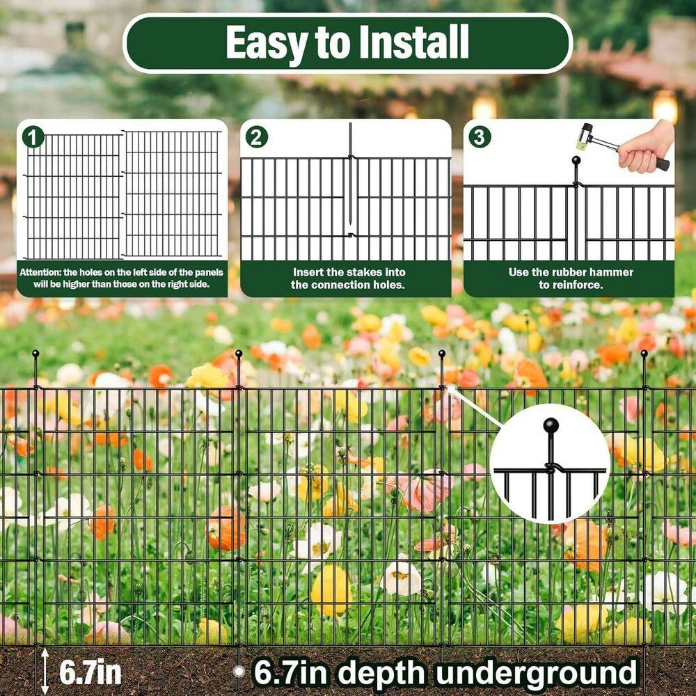 - No-dig installation process makes setting up your decorative garden fence simple and quick, just align panels, insert stakes, and use the rubber mallet to secure them in place no extra tools needed