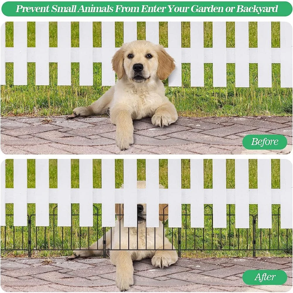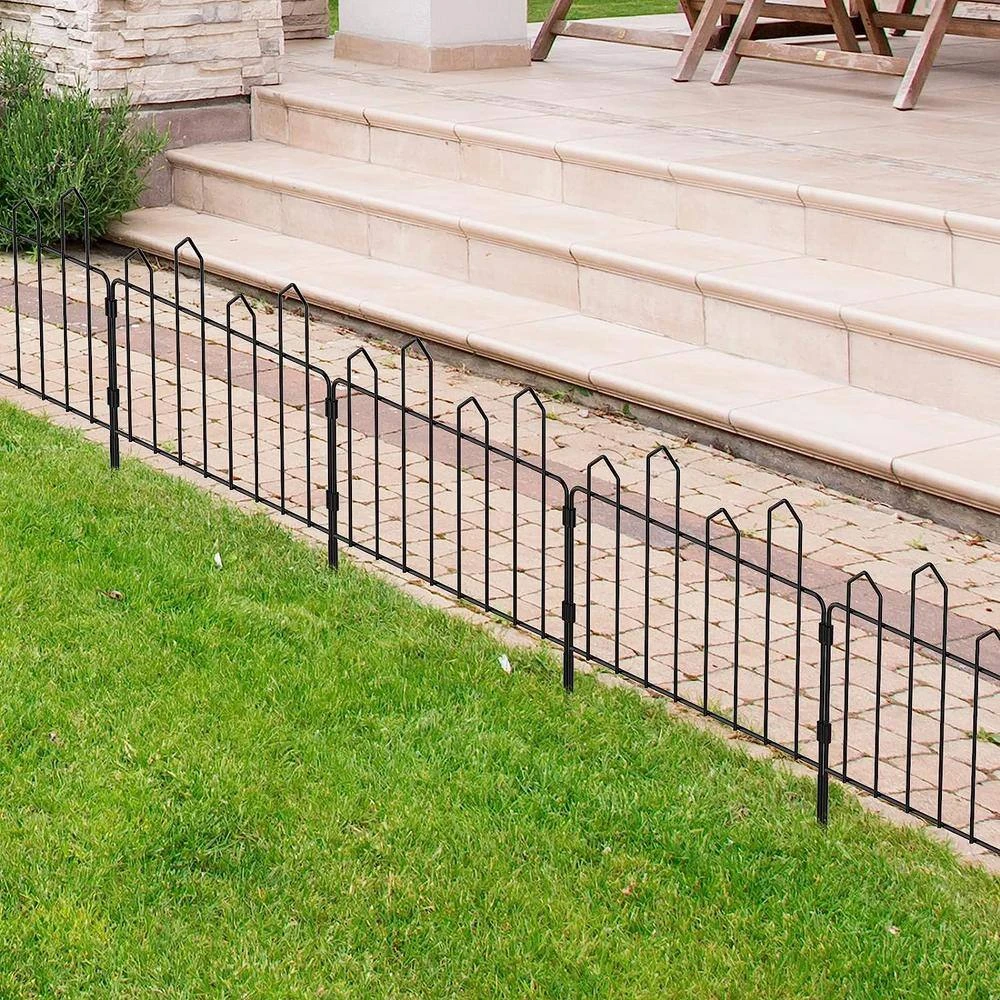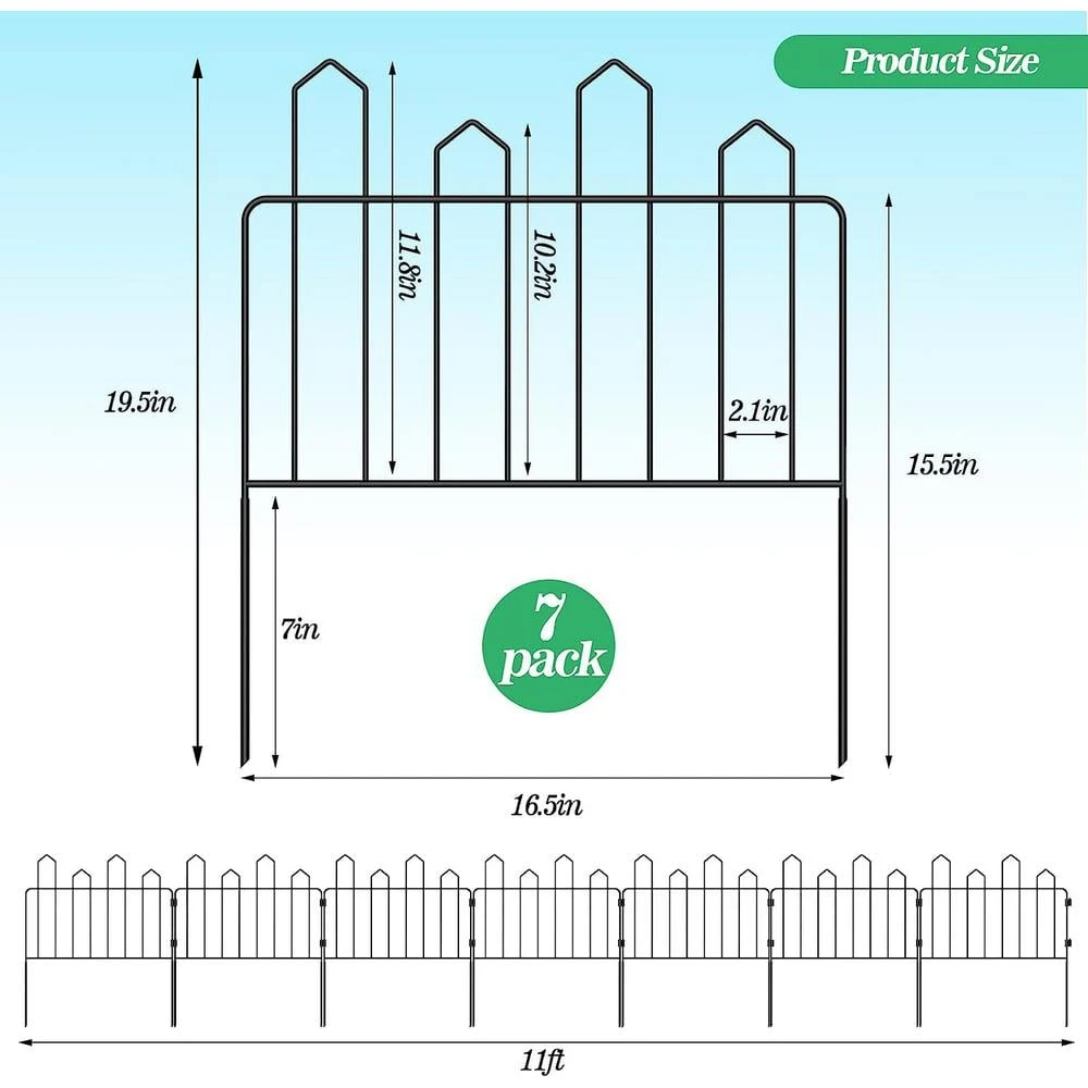 - Multi-scene usage with a total length of 11 ft. that consists of 7 defense fencing panels, this iron garden fence can be easily installed in any garden or backyard, not only does it protect your flowers and plants from pets and other outdoor elements, it also adds more decorative elements to your home and blends in with the lawn and stone floor