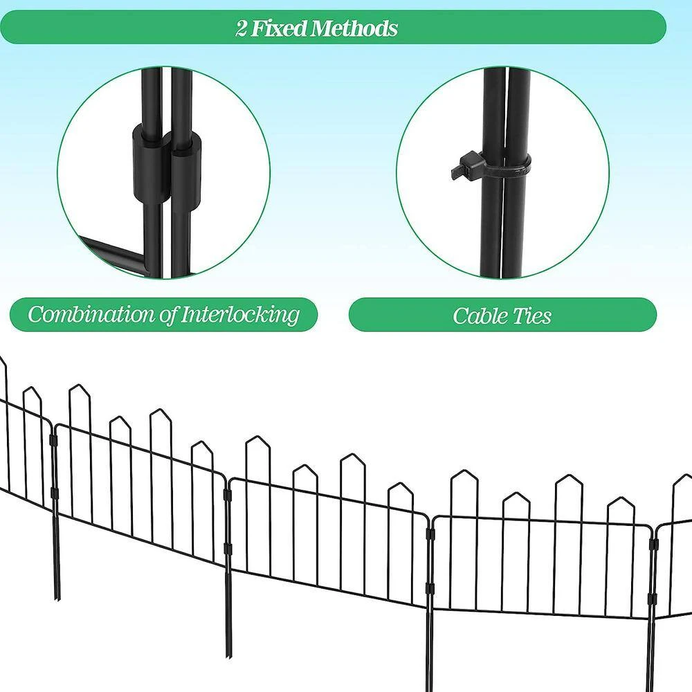 - Easy to install with its sharp-tail design, this metal garden border fence can be easily inserted into the soil, use the interlocking or zip-tie to connect the fence panels to form any shape you need, it can also be used as vegetable garden fence, pathway edge fence, courtyard landscape fence, or dog fence in your yard