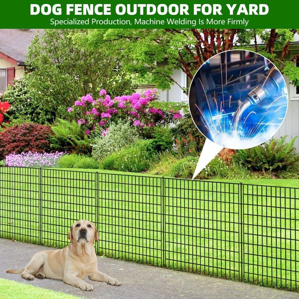 This dog fence panel measures 33 in. height and 29 in. width, allowing for expansion based on specific needs. The upgraded fence, with its height increased to 33 in. effectively prevents large dogs from entering the garden. Meanwhile, as an animal barrier fence, its small gaps effectively keep out small animals and deter intruders. Made of high-quality, rust-proof metal, the fence is sturdy, durable, and easy to maintain. Installation is simple, requiring only the insertion of metal stakes into the ground. The fence is also expandable to meet different needs. Featuring a classic black design, the fence blends seamlessly into any garden or patio style, making it both practical and decorative. It can be used to define garden boundaries, create safe play areas, and enhance the appearance of walkways, backyard decorations, and garden borders.