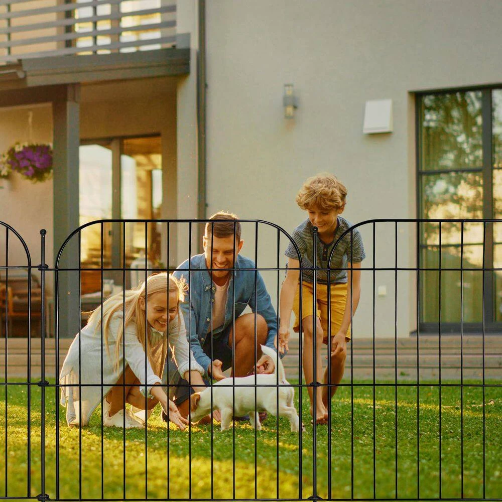 This set features 5 stylish and practical 24 in. wide x 24 in. high fence panels as its core, paired with 6 sturdy metal stakes up to 30.7 in. high, providing a beautiful and safe barrier for your garden. No need for complicated buckles or ties, simply align the fence plate holes, insert metal piles, and easily tap with a rubber hammer to instantly stabilize in the soil. The labor intensity is greatly reduced, and the installation process is simple and fast. The outdoor dog fence is made of thick metal wire, which is sturdy and durable, not easy to break or bend. The surface powder coating not only prevents rust, but also withstands the test of harsh outdoor environments, providing long-lasting protection for your garden. Whether it’s protecting flower beds from small animal infestations or creating a cozy outdoor space for pets, fences can easily handle it. You can also freely express your creativity by connecting them into various shapes and sizes, or adding additional panels to extend the length and meet your diverse needs.