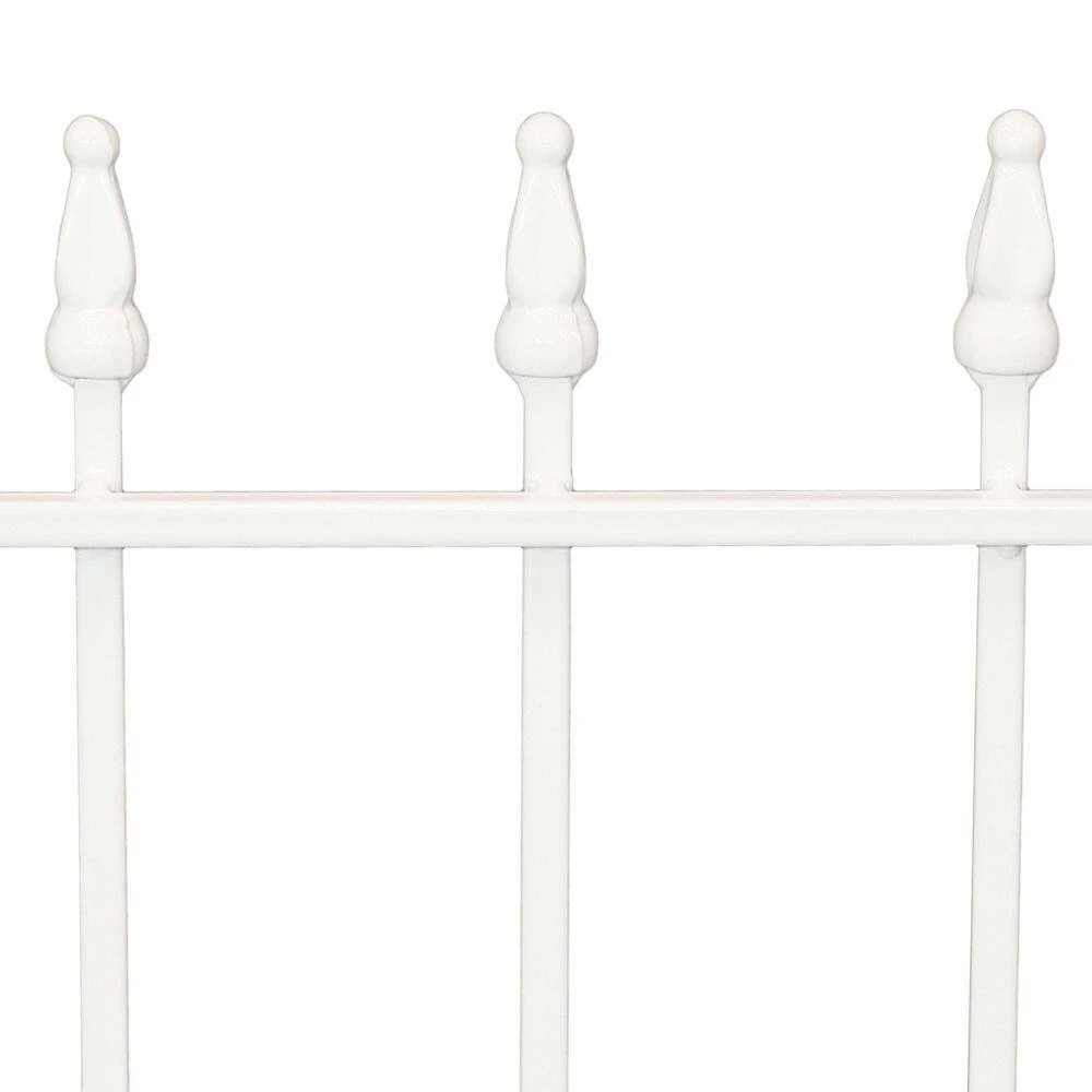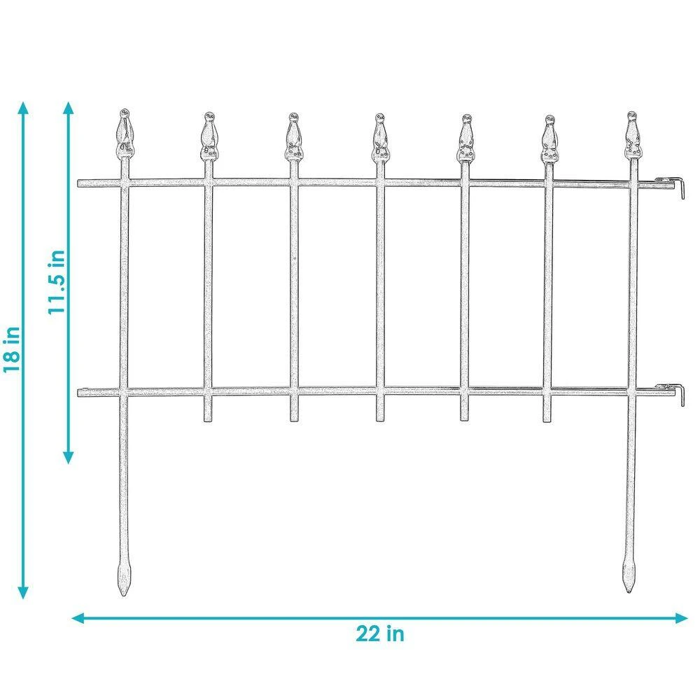 Create a border around a flower bed, pathway, or yard with these metal garden fence borders. These Roman-styled fence borders are the right touch for any outdoor space with each panel featuring 2-posts that are solidly grounded and five shorter posts for an elegant look. Each panel features finial-topped posts for extra appeal and charm. Made from durable, rust-resistant iron, these fencing panels are designed with long-lasting strength. Each section is connected with a hook on each side of the panel. This connection creates a complete border to enhance and protect a beautiful walkway or garden area.