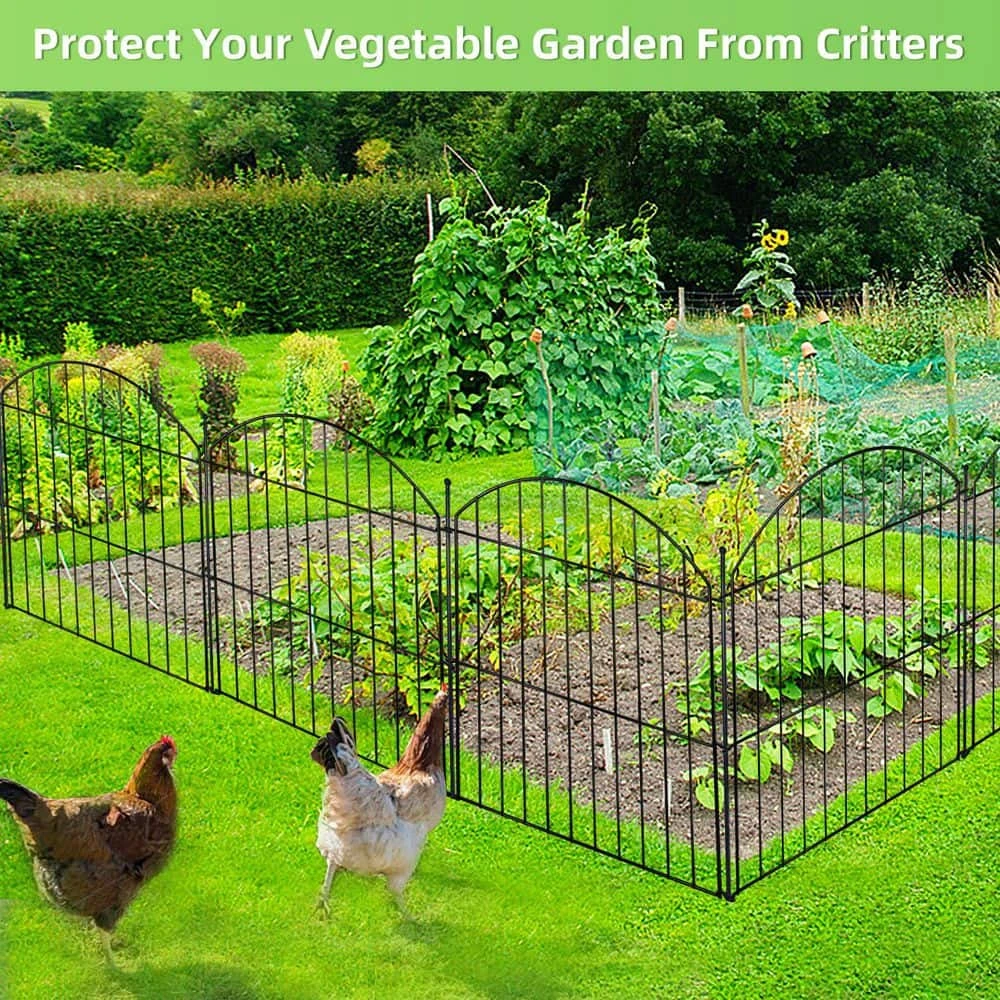 🏡Create your garden oasis with our elegant rust-proof fence featuring graceful arches and durable black coating that withstands all weather conditions. Enjoy revolutionary no-dig installation – simply snap the panels together, insert the included 30-inch metal stakes, and gently hammer into place. With 5 flexible panels (24×24 inches each) creating a 10-foot barrier, this versatile garden border perfectly adapts to your landscape while effectively keeping pets and rabbits away from your plants. The sturdy metal construction maintains its beauty season after season with zero maintenance, easily stored or rearranged whenever needed. Transform your outdoor space in minutes with this perfect combination of beauty and functionality!