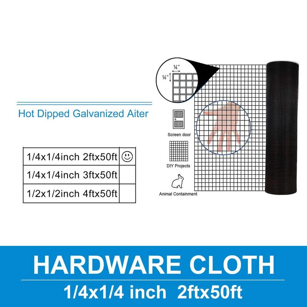 - Size and package – the size of the black hardware cloth is 24 in. x 50 ft. 21gauge is galvanized inside and resists corrosion PVC double coated outside, 1/4 in. opening, maximum rust resistance ensure quality and service life, carton packaging