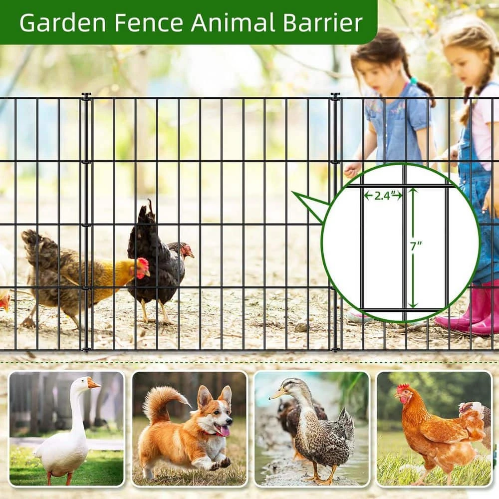Transform your outdoor space with the Metal Garden Fence, a versatile and easy-to-install solution for your yard or patio. Each of the 8 panels is crafted with sturdy Gauge 9 thickness iron wires, providing a stable barrier for medium and small-sized dogs while seamlessly integrating into any landscape. With the flexibility to extend and customize, you can adapt this no-dig fence to protect your flower beds and create a picturesque, pet-safe environment.