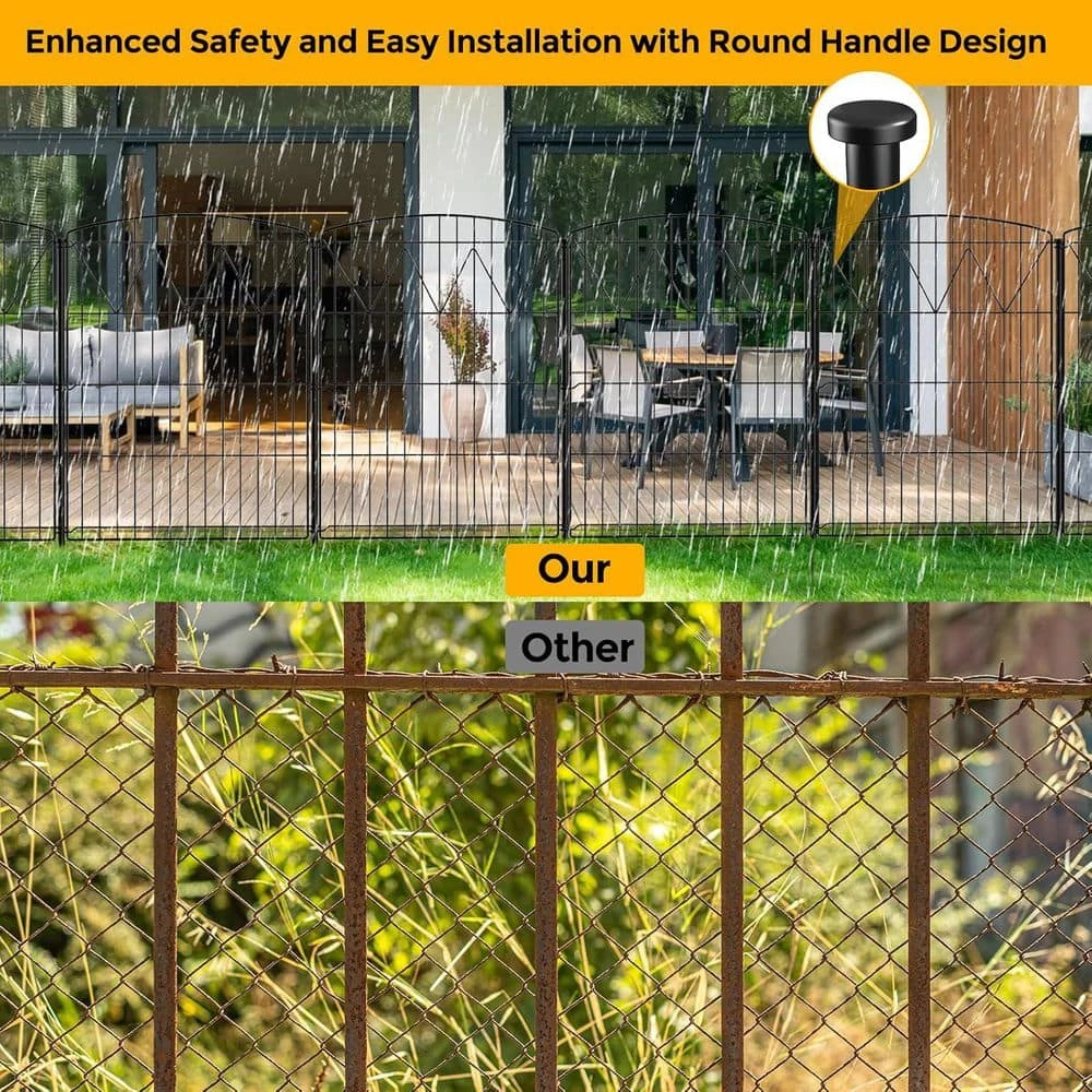- Garden fence features a rustproof metal with a black coating that ensures durability and weather resistance, maintaining its beauty and protection against sun and wind over time