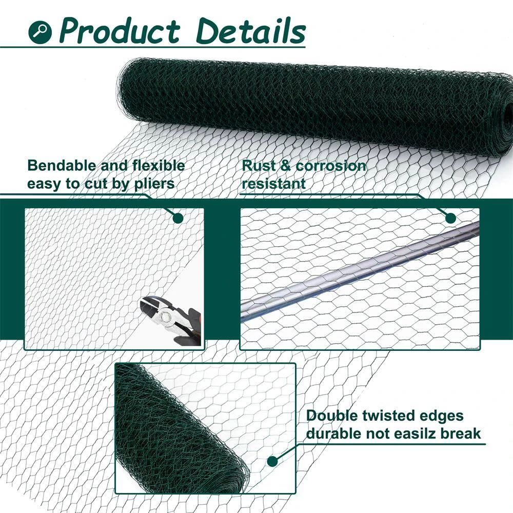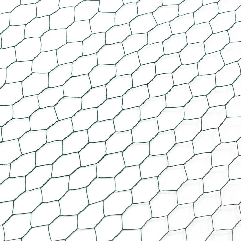 Our high-quality poultry netting chicken wire is coated with green plastic for enhanced durability and long-term use. Ideal for various applications, such as garden fences, chicken enclosures, and pet cages, this reinforced hexagonal aviary netting is lightweight yet sturdy. The double direction hexagonal twist design ensures the wire stays flat and straight, making installation and trimming to your desired size easy. Perfect for protecting your garden, vegetable beds, and landscape from animals and pests, our rust-resistant fencing wire is a reliable solution for both residential and agricultural use. Size: 3.6ft (W) x 196.85ft (L).