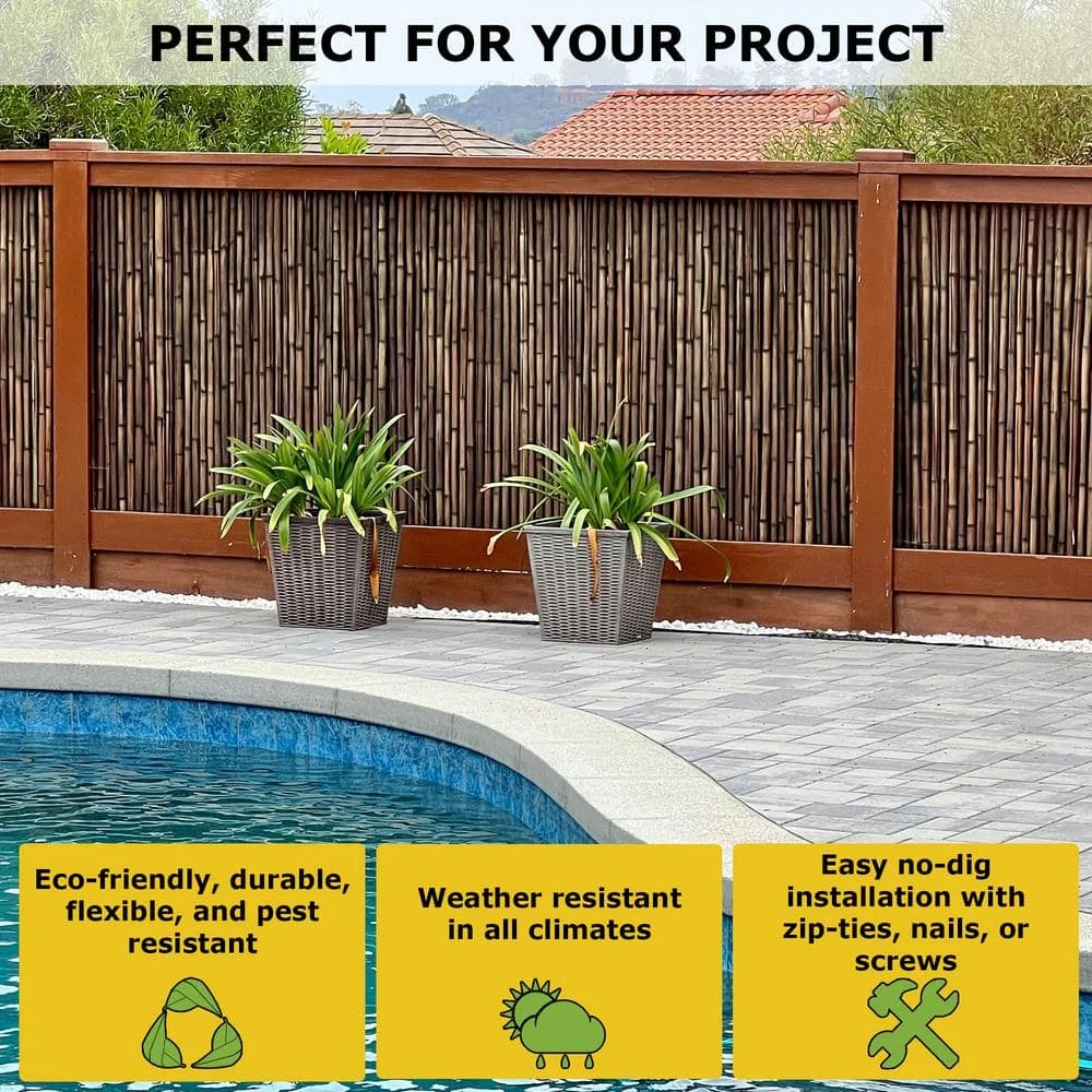 - SUPERIOR QUALITY: Made from strong, long-lasting Tonkin Bamboo, our black bamboo fence is built to withstand the elements, providing you with a decorative yet durable solution for your outdoor or indoor spaces.