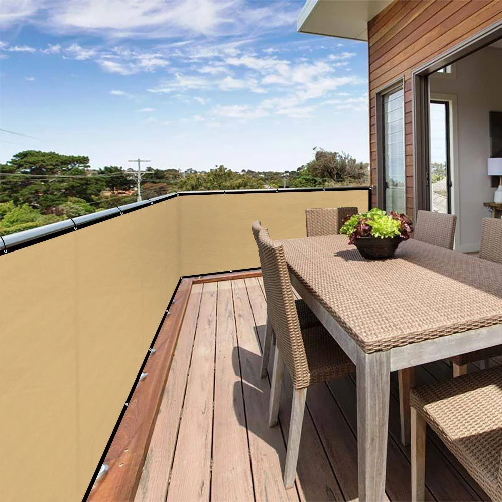 - Edges of our privacy screen are reinforced with PE straps and feature strong grommets, plastic guards at the 4 corners are both durable and aesthetically pleasing