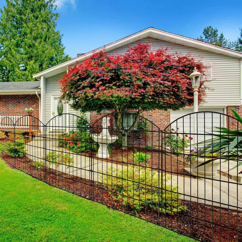Stylishly protect your yard with this 32-in. tall metal garden fence set. Made from high-quality rust-resistant metal, this fence is easy to install with no digging required, making it both beautiful and practical for all seasons. Perfect for defining garden boundaries or keeping animals out, it’s a stylish addition to any outdoor space.