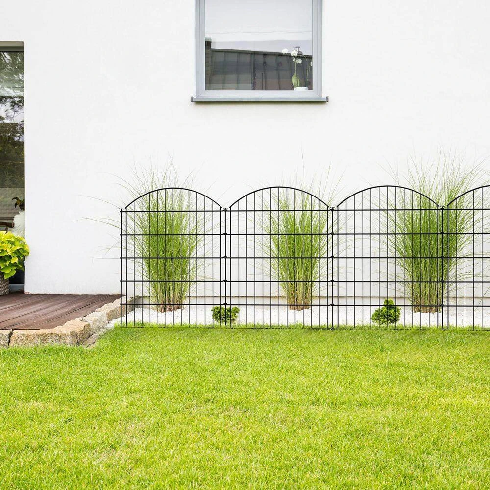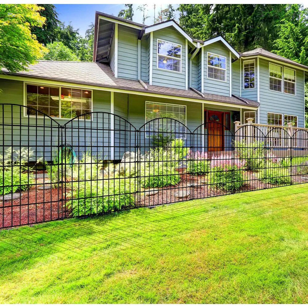 Transform your outdoor space with this versatile metal decorative garden fence, offering both style and functionality. Each rustproof panel stands sturdy at 32 in. high, making it an ideal solution for defining garden borders, securing pets, or creating a safe play area. With easy installation and the ability to expand as needed, this fence seamlessly combines elegance and practicality for any garden style.