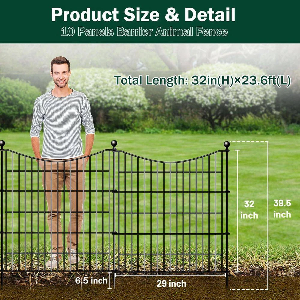 Upgrade your garden with our 10 Panels Decorative Garden Fence, offering rustproof metal construction that outlasts traditional wooden fences with minimal upkeep. Effortlessly install this elegant spear-top design to create beautiful borders, safe play areas, or secure pet zones, all while resisting harsh weather. Customize the layout to suit your outdoor spaces whether for patios, pools, or decorative borders ensuring both style and protection for your yard.