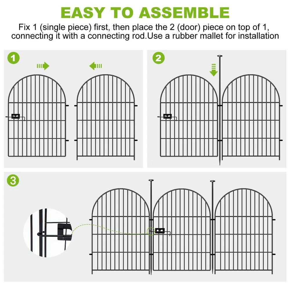 - Fence is quick and easy to install, the metal poles feature pointed and rounded tips to ensure a safe and secure installation process