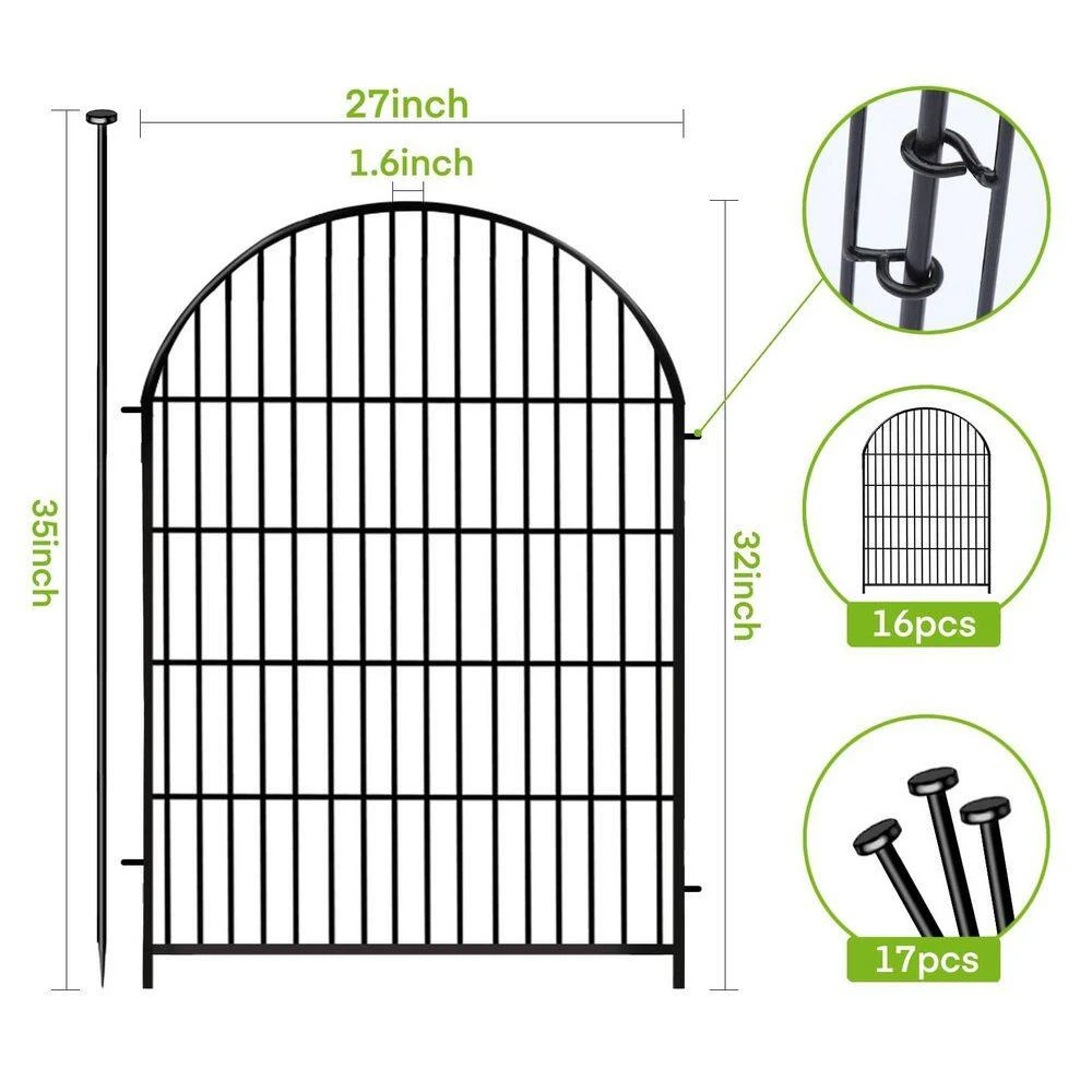 - Classic arch design fence set includes 16 fence panels (15 fence panels and 1 gate) with a total length of 35 ft.
