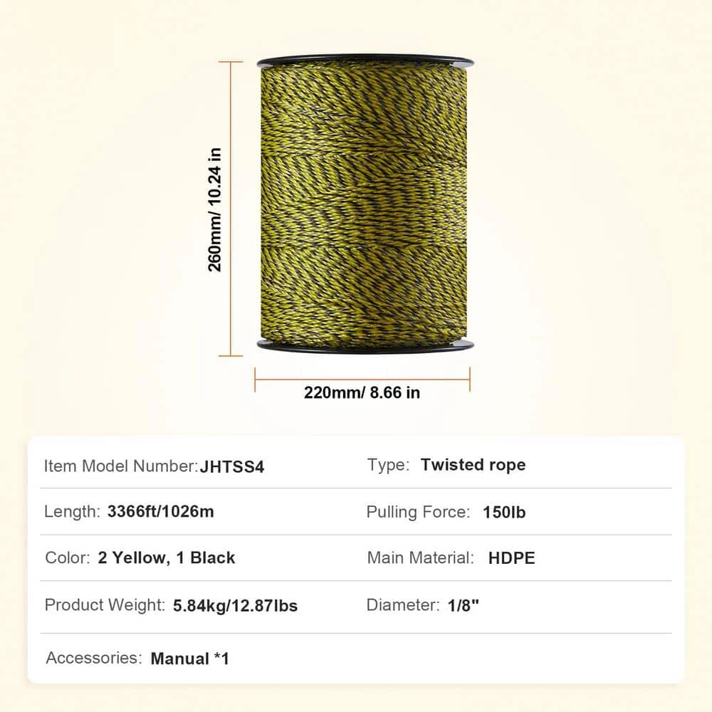 - Specifications:item model number: htss4,l.: 3366ft./1026m,pulling force: 150lb.,color: yellow, black,main material: hdpe,product weight: 5.84kg/12.87lbs.