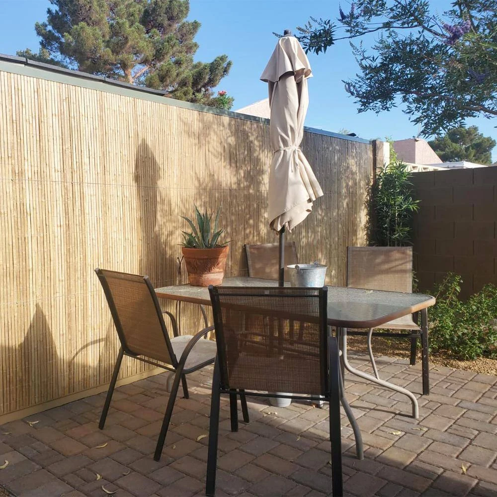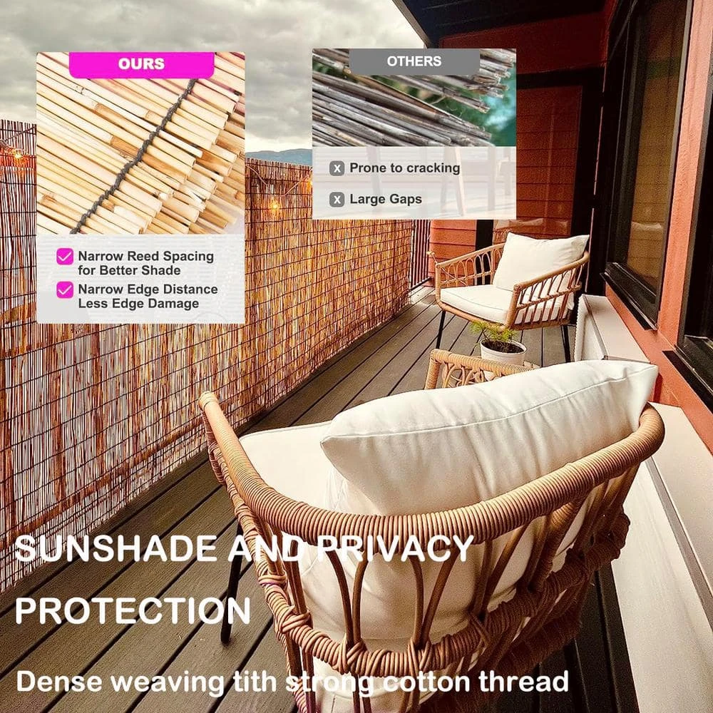 - More shade and privacy: double up for better shade and privacy from neighbors it also keeps pets from scratching the reed fence tightly woven with cotton thread, the reeds have narrow gaps that look great and last long while allowing airflow for ventilation plus, the tightly bound edges prevent cracking, keeping your fence in perfect shape