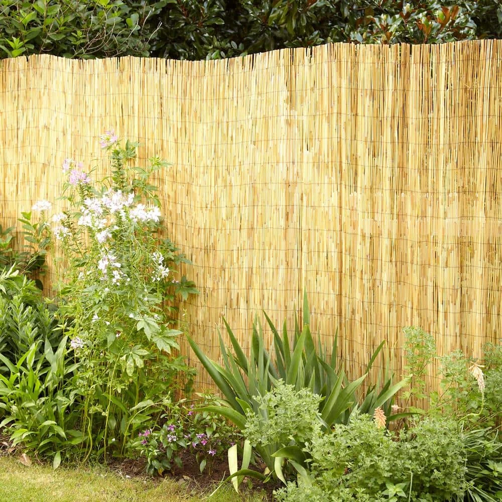 This 4 ft. x 8 ft. natural reed fence is made for patio shading, soundproofing, duck blinds and other outdoor uses. The reeds are tightly woven with vinyl-coated, rust-resistant wire every 4 in. to help provide privacy and protection from the wind. Natural reed fences are perfect for covering unattractive chain-link fences and can create a tropical feel to your backyard or garden. Light filters through 1 layer of this fence. Repeat 2 or more fence layers for more privacy.
