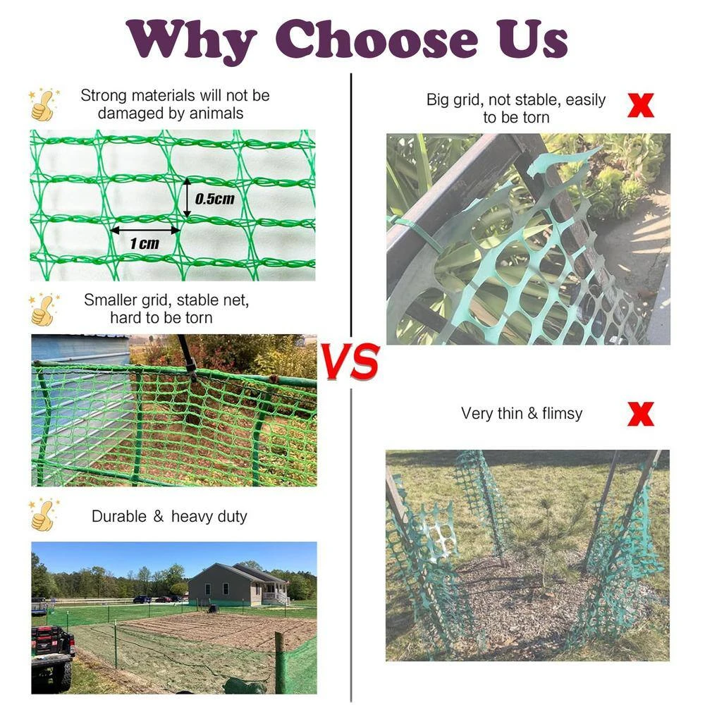 - Durable and heavy duty: this garden fencing isn’t your typical temporary fence utilizing unique warp knitting technology, it’s highly tear-resistant and UV-resistant, capable of enduring harsh outdoor conditions and resisting the bites of most animals, pets, and poultry made from brand-new, odorless materials, ensuring a pleasant environment for your garden