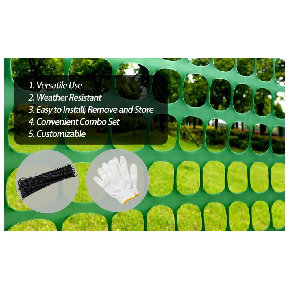 - Convenient combo set the product package contains a 4 ft. x 100 ft. (1.2m x 30m), 8.73 lbs. mesh fencing roll, 100 zip ties for securing the fence, and 1 pair of gloves for safe installation, though posts are not included and our team is ready to assist with any issues