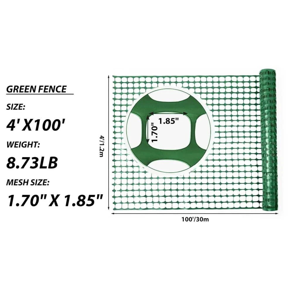 The plastic mesh fence is a versatile solution for a variety of outdoor temporary fencing needs, including garden fencing, animal barriers, poultry netting, construction safety, and pool fencing. Made of durable, UV-resistant plastic, it is reusable and environmentally friendly.Installation and disassembly are simple, allowing for easy nailing, binding, or wrapping around objects. The fence can be easily cut to size with smooth edges, providing flexibility for different applications.The product package includes a 4 ft. x 100 ft. mesh roll, 100-ties for secure fixation, and a pair of gloves for safe installation. Posts are not included. Should you have any questions or issues, our customer service team is ready to assist you.