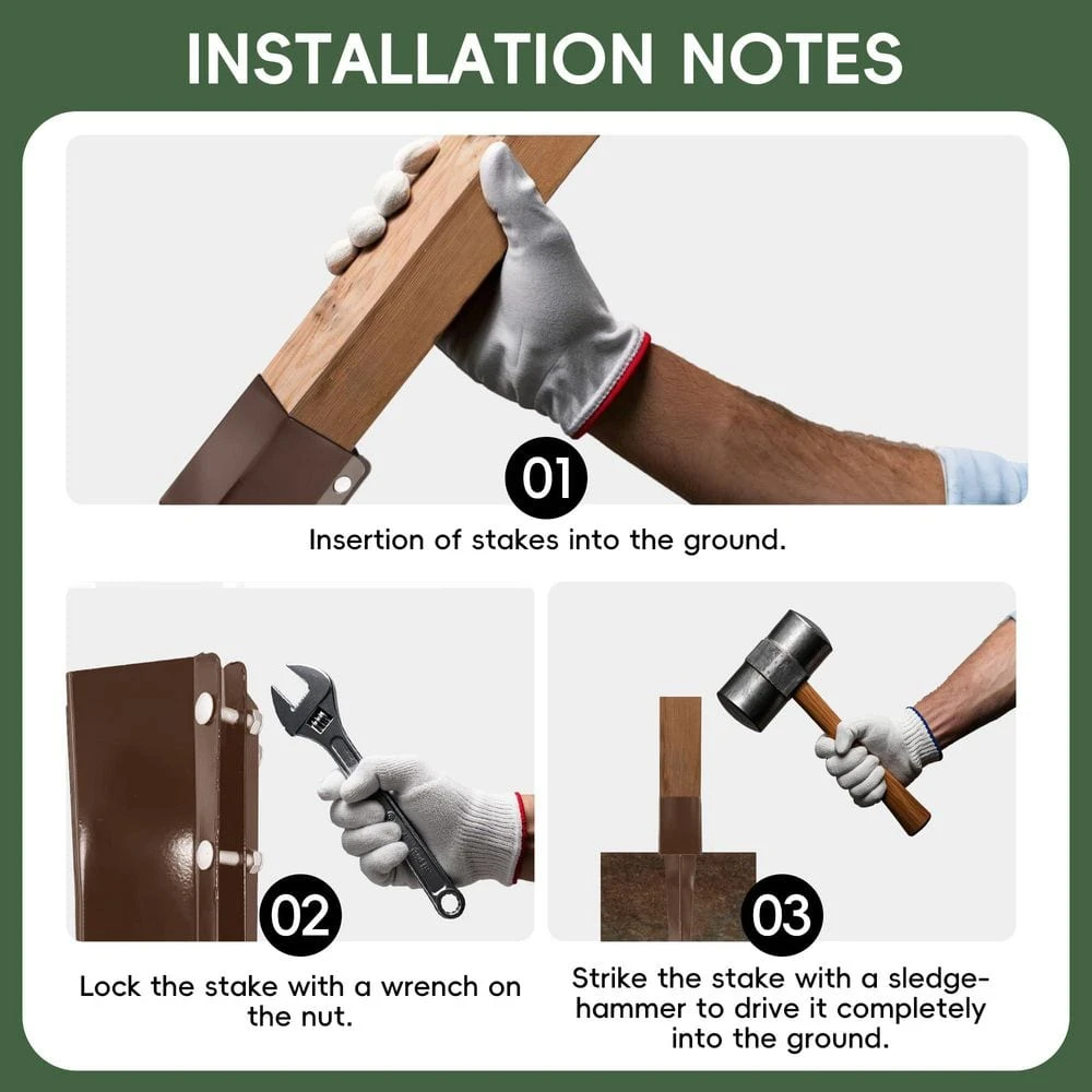 This high-quality mailbox deck railing, fence post anchor nail is the solution you have been looking for. Its surface is treated with a durable powder coating, and the heavy-duty black powder coating is made of 14 grade high durability performance steel, which can effectively resist cracking, peeling, and rusting, and is long-lasting. It can also protect the deck wood from rotting. It has a wide range of uses, including fences, sheds, mailboxes, flagpoles, decks, and other items, all of which can be securely fixed with it to meet your diverse fixed needs in daily life. Installation is even easier and simpler. The unique design is suitable for common wooden columns, and 1-side screw allows the column bracket to open for easy insertion into the column, which can be firmly fixed by tightening. Using a hammer to drive into the ground is a simple few steps that do not require digging holes or pouring concrete, making it easy to handle. It is also a good helper for protecting wooden structures. The metal fence post base prevents the wooden post from directly contacting damp soil, extending the service life of the fence post or mailbox. Choosing it means choosing a convenient, durable, and efficient new way of outdoor fixation, adding stability and peace of mind to your outdoor space.