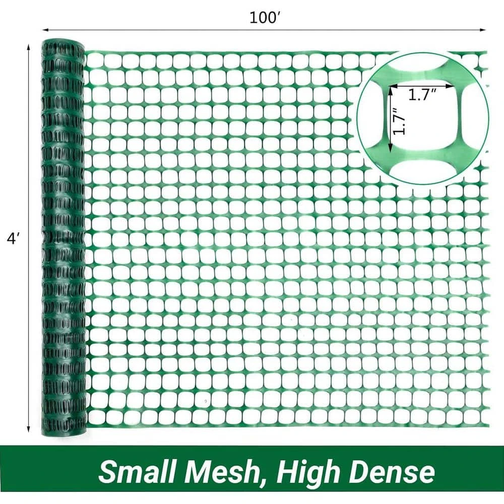 - Versatile safety fence extends 100 ft. in length and stands 4 ft. tall, featuring 1.7 x 1.7 in. meshes for optimal airflow while keeping unwanted elements out perfect for various fencing needs