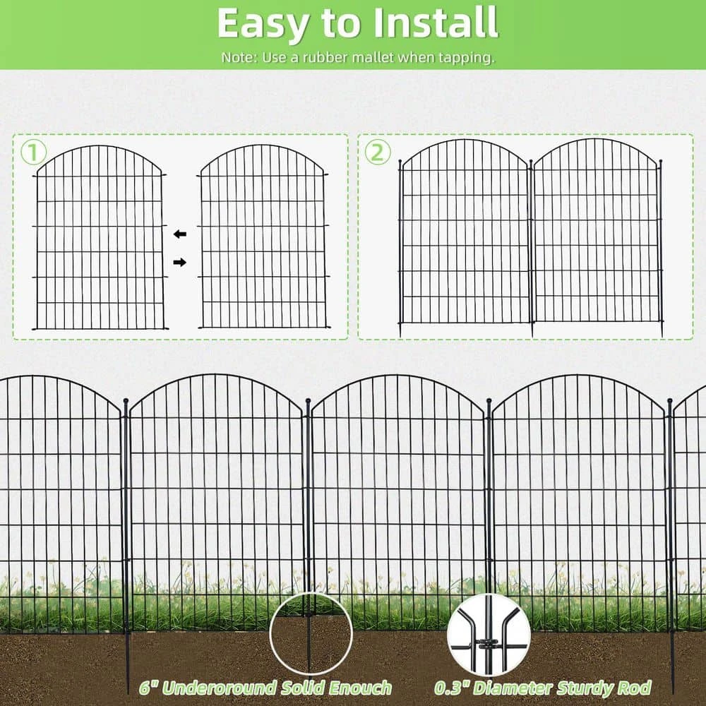 🏡Transform your garden with our rust-proof decorative fence featuring elegant arches and durable black coating that withstands all weather. Enjoy revolutionary no-dig installation – simply snap the panels together, insert the included 47-inch metal stakes, and gently hammer into place. With 5 flexible panels (29×40 inches each) creating a 12-foot barrier, this versatile garden border perfectly adapts to your landscape while keeping pets and rabbits away from plants. The sturdy metal construction ensures long-lasting beauty with zero maintenance, easily stored or rearranged whenever needed. Create your perfect garden oasis in minutes!