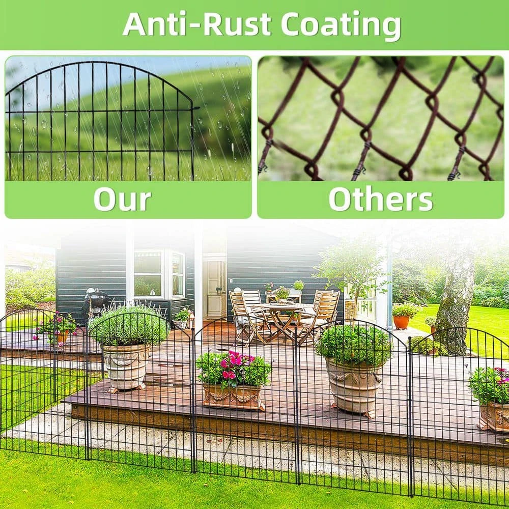 - 🏡Made from heavy-duty metal with elegant arches, this decorative fencing requires zero maintenance.