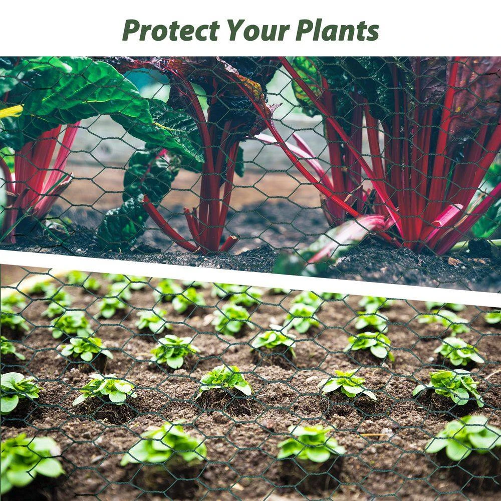 Our poultry netting chicken wire is made using high quality marital and green coated plastic before packing to ensure long-term use. Ideal for making garden fences, chicken enclosure, livestock confinement, runs and cages for pets, lawn netting and more. Compared to a plastic chicken wire, our reinforced hexagonal aviary netting are lightweight, sturdy and equally spaced to provide long-term use making them more cost-effective than any other galvanized fencing. Our poultry netting is designed with double direction hexagonal twist while staying flat and straight making it easy to install and trim to your desired size for various applications. whether you want to keep your garden flower bed, vegetable, grape vines, farm field and landscape safe from animals like cat, dog, gopher, goat and pest as repeller, keep chickens from getting out or simply make a protective fence or enclosures, around the house, our rust resistant garden fencing wire has you covered.