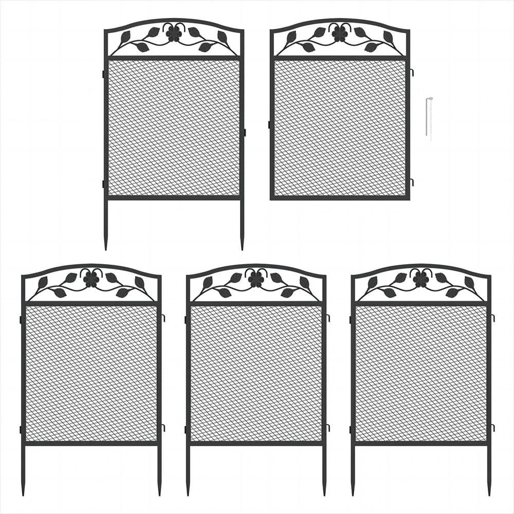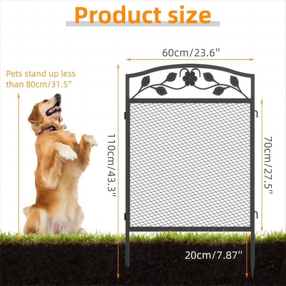 - Size – black metal fencing panels with gate(pack of 5 in total), tall 43.3 in. x W 23.6 in. of each