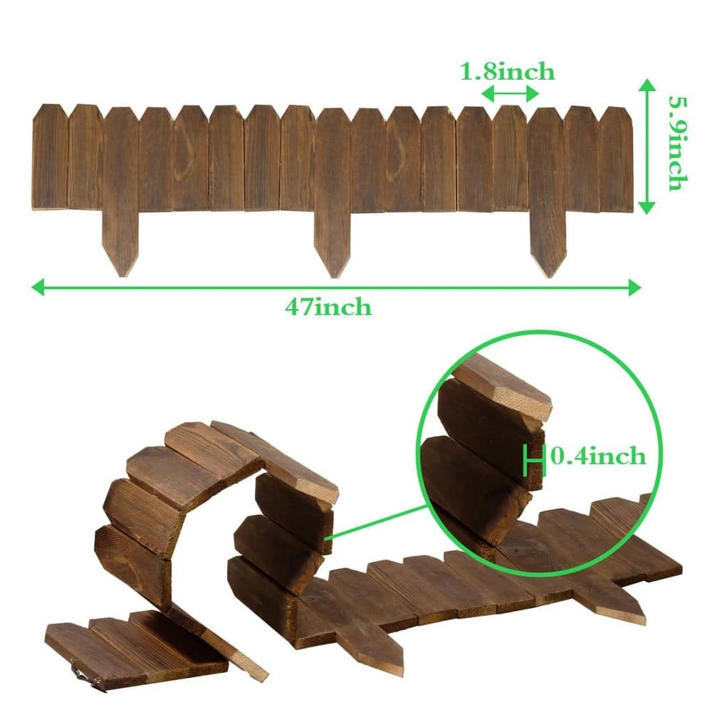 The Wood Garden Fence Border is a beautiful, rustic-style decorative fence designed to enhance your garden while serving as a functional border. Made from high-quality wood that has undergone a carbonization process, this fence is durable and requires minimal maintenance. It is ideal for flower beds, landscaping, and garden edging needs, offering both aesthetic appeal and structural strength. The innovative metal inner core connection ensures durability, while the flexible design allows for easy installation in various shapes and sizes.