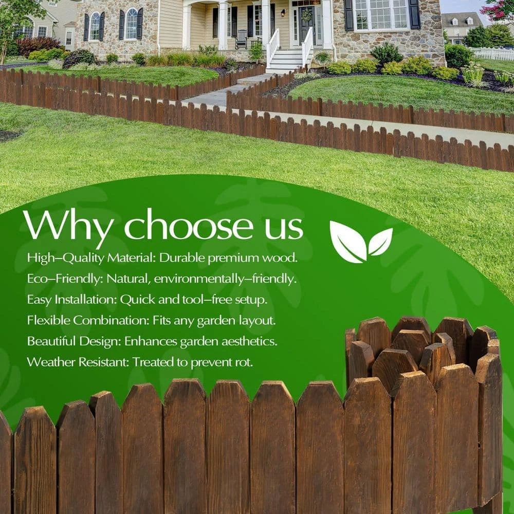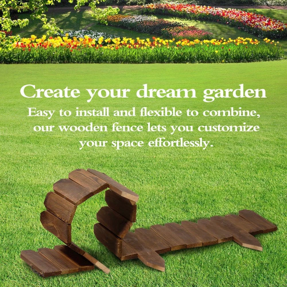 The Wood Garden Fence Border is a beautiful, rustic-style decorative fence designed to enhance your garden while serving as a functional border. Made from high-quality wood that has undergone a carbonization process, this fence is durable and requires minimal maintenance. It is ideal for flower beds, landscaping, and garden edging needs, offering both aesthetic appeal and structural strength. The innovative metal inner core connection ensures durability, while the flexible design allows for easy installation in various shapes and sizes.