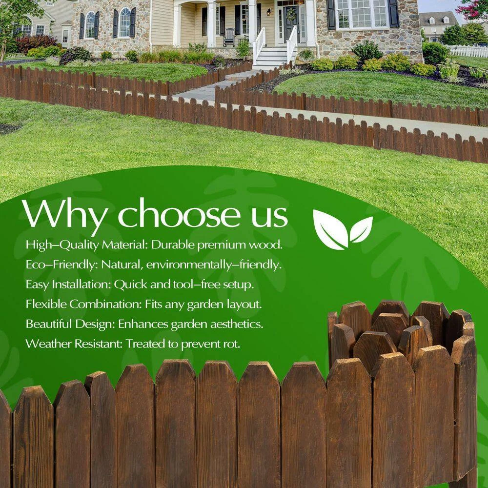 The Wood Garden Fence Border is a beautiful, rustic-style decorative fence designed to enhance your garden while serving as a functional border. Made from high-quality wood that has undergone a carbonization process, this fence is durable and requires minimal maintenance. It is ideal for flower beds, landscaping, and garden edging needs, offering both aesthetic appeal and structural strength. The innovative metal inner core connection ensures durability, while the flexible design allows for easy installation in various shapes and sizes.